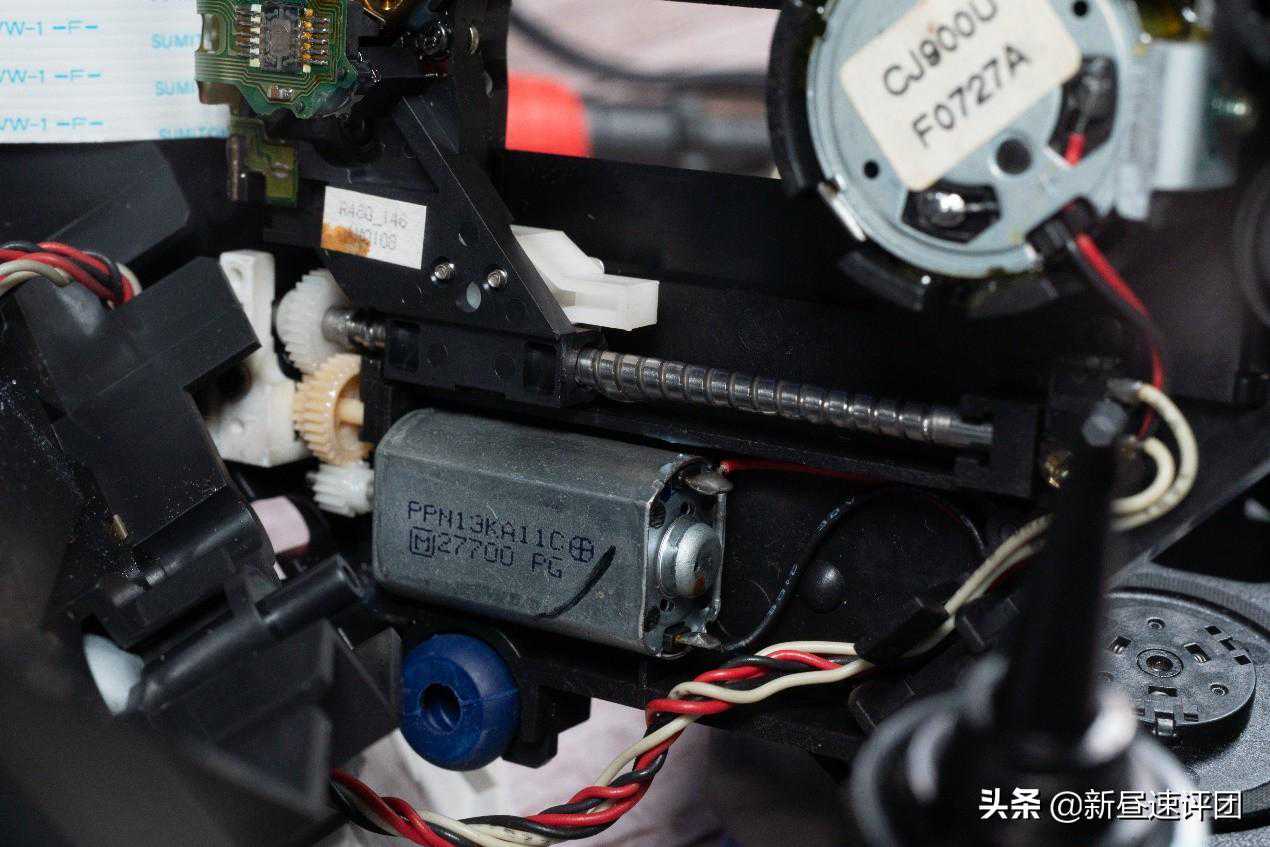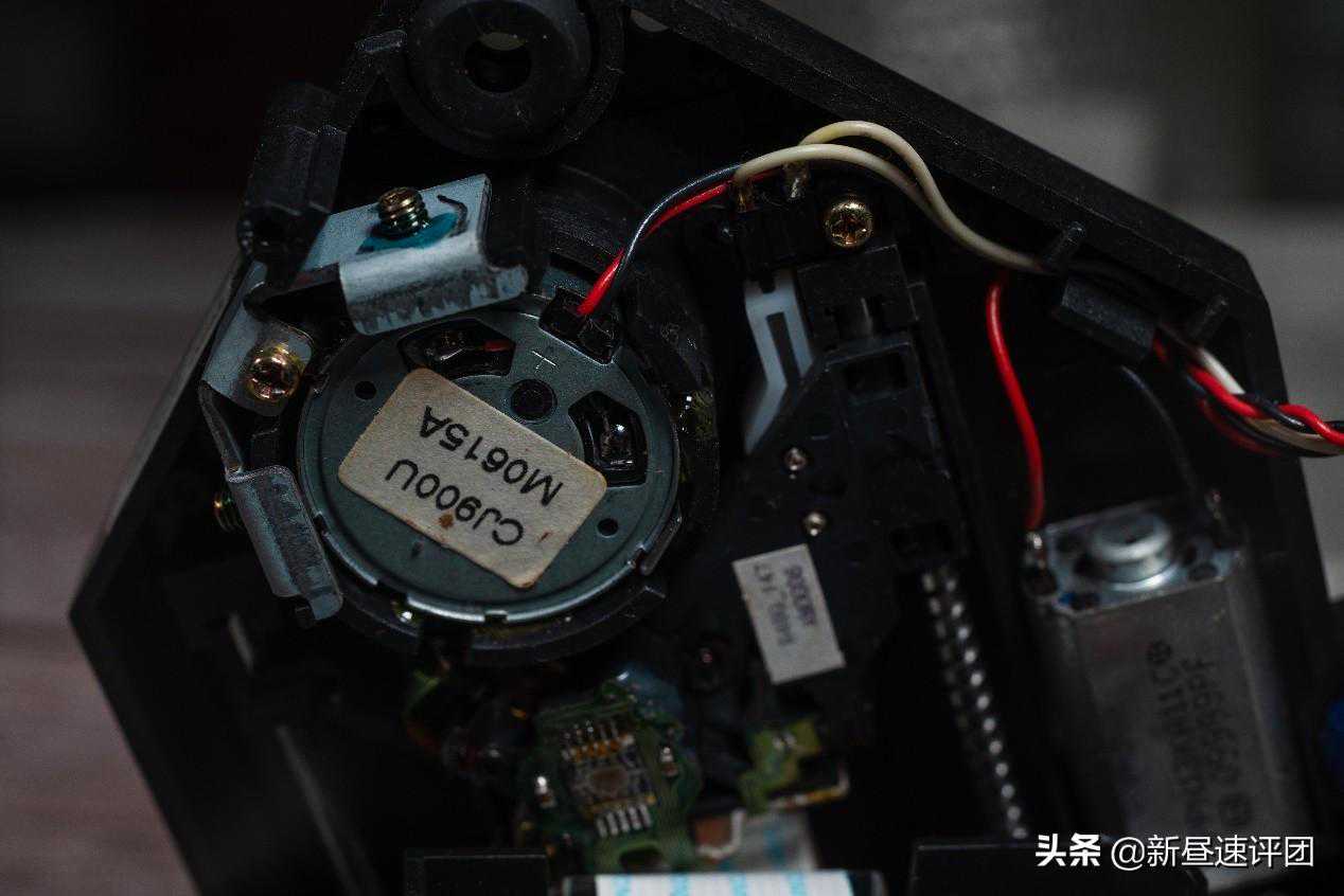 拆下光驱,光驱结构挺简单,但和现代光驱有一点差异,移动光头的寻道电机还很大