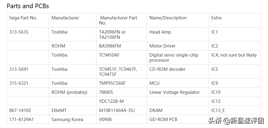 但我之后又找到一份资料,可以看到大部分其实都是东芝提供技术,还有一个不熟悉的牌子EliteMT,当然我最后知道三星干了什么,三星主要做的事情是设计PCB,把这些GD-ROM驱动器的零件全部组装在一块