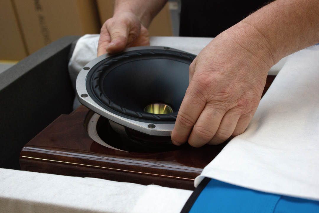 在高音单元的材质上,根据不同系列使用镁金属振膜或者钛金属振膜,为的是其平滑细腻、华丽的音色以及出色的高频延伸。我们使用的是镁膜或者钛膜的半球形压缩高音和FyneFlute混合多种纤维中低音纸盆组成,这是天朗前主要工程师,也就是负责设计天朗皇家帝国的PaulMills率领的设计团队多年来持续、专注的技术结晶。