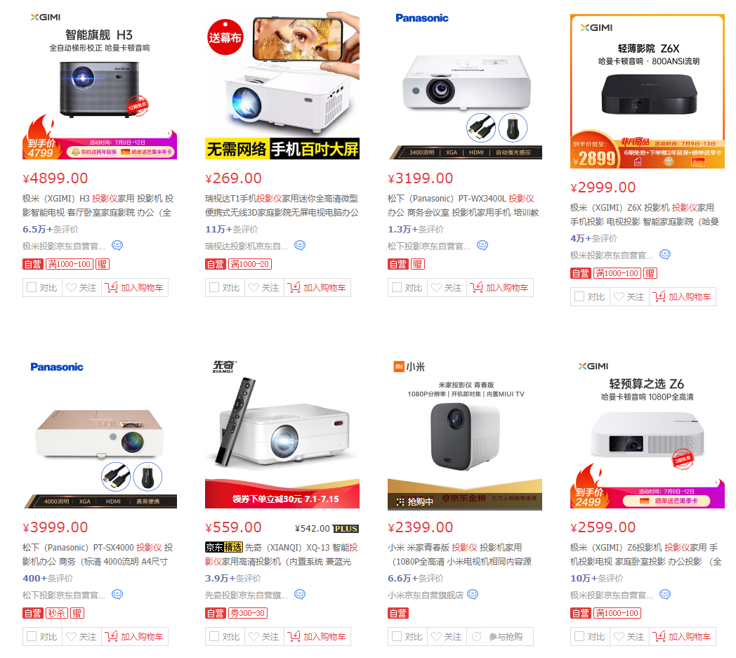 1、在我对投影仪一窍不通的时候,搜索投影仪的商品,可以看到琳琅满目,简直很容易挑花眼: