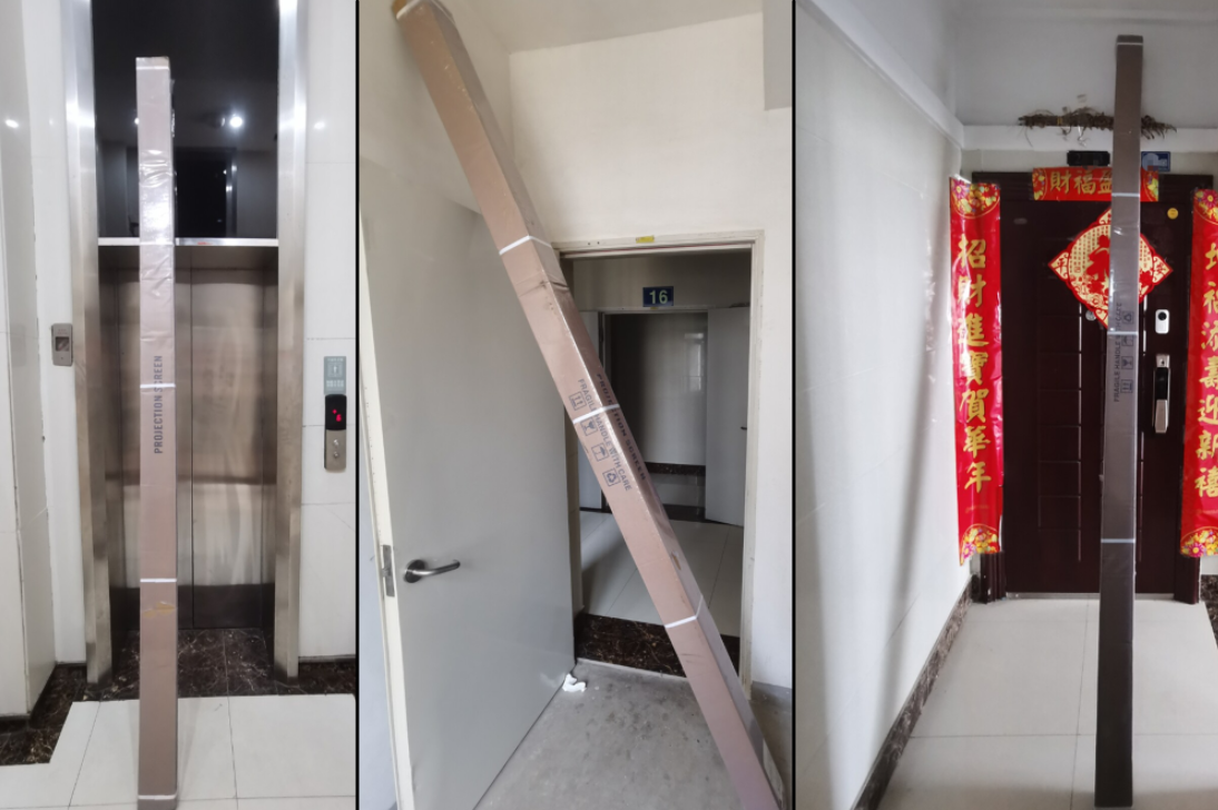 5、唯一要说的是,这120寸的幕布,长度在3米左右,没法放入电梯,我是扛着这个家伙从1楼抬到了20几楼,简直了,大家买幕布的话,要做好心理准备: