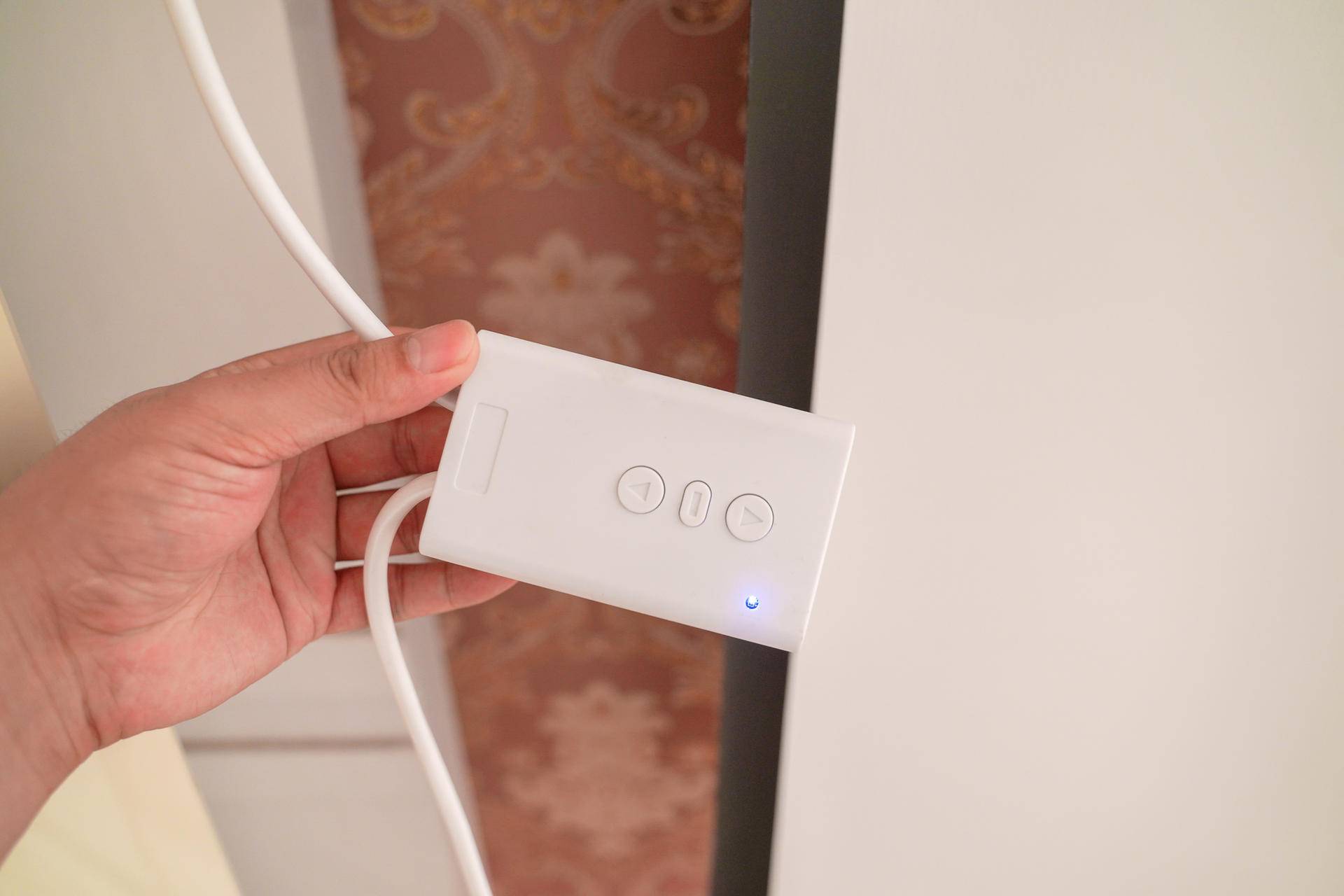 7、电动幕布是通过这个来调整升降,而且还赠送了一个遥控器:
