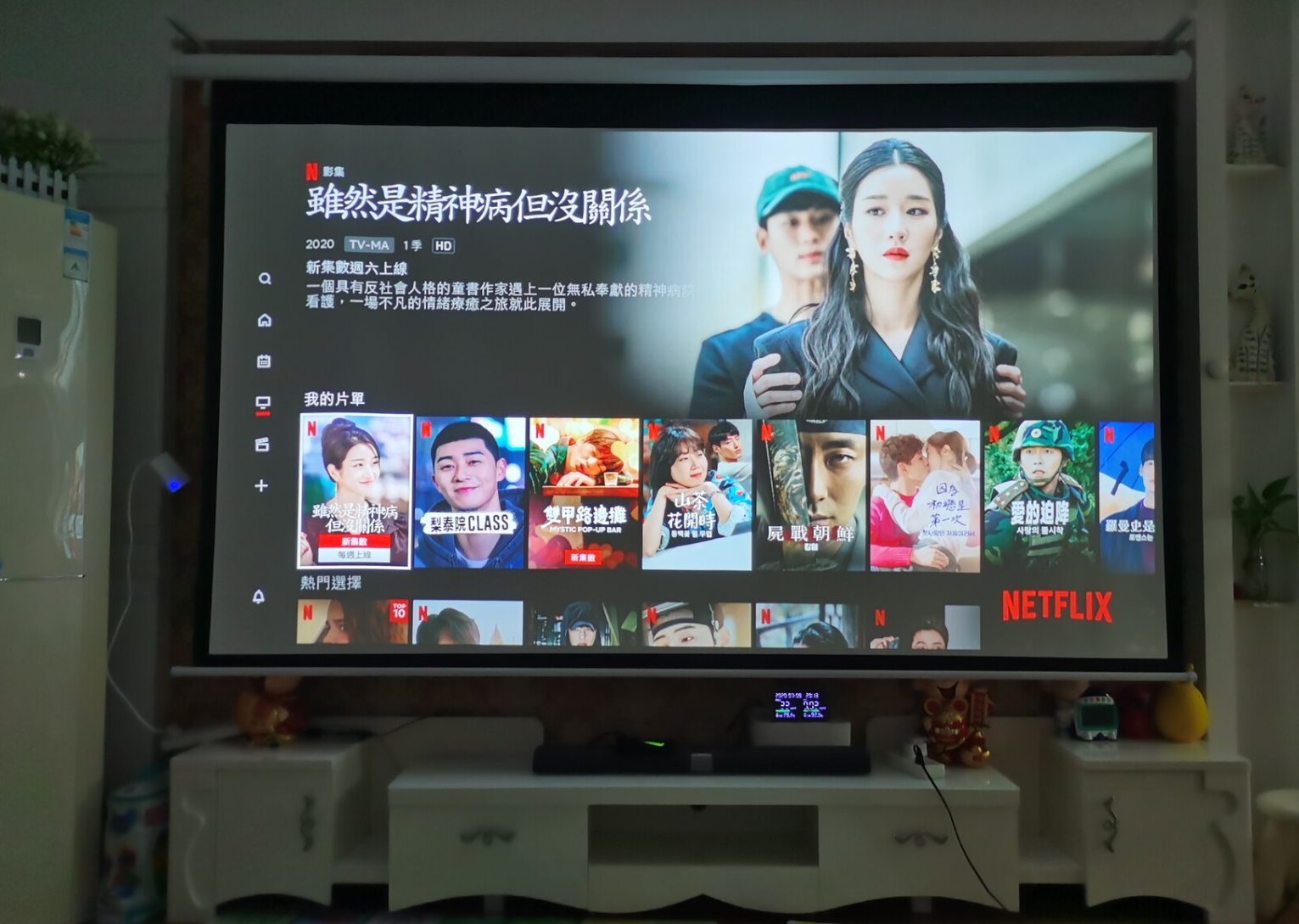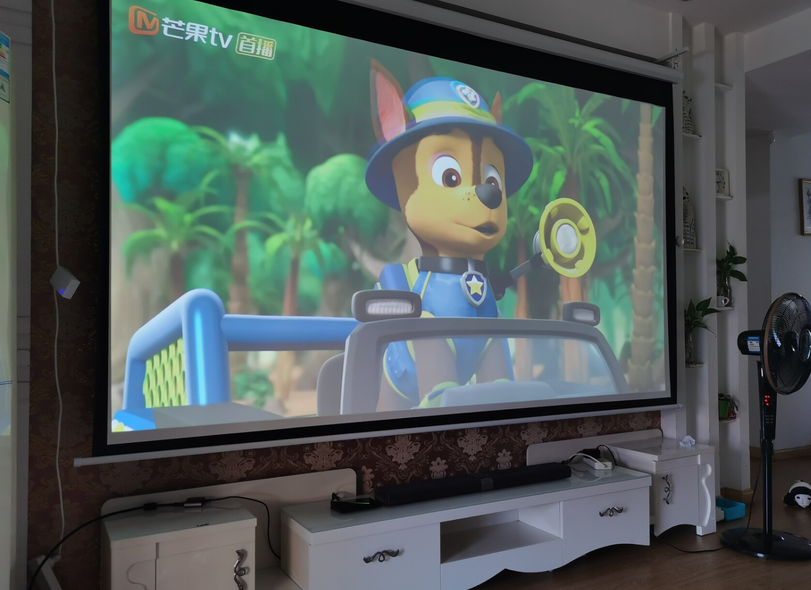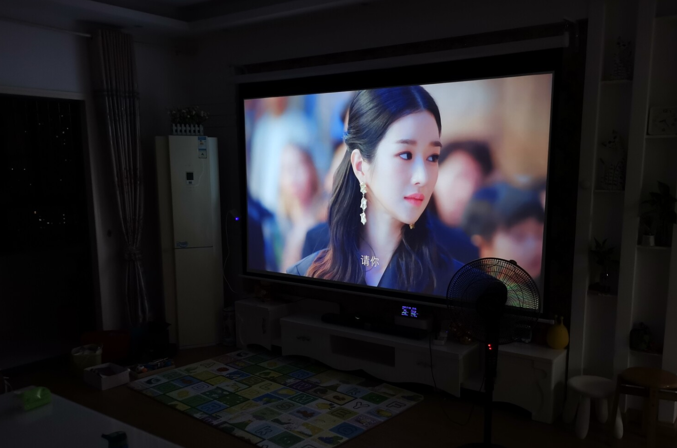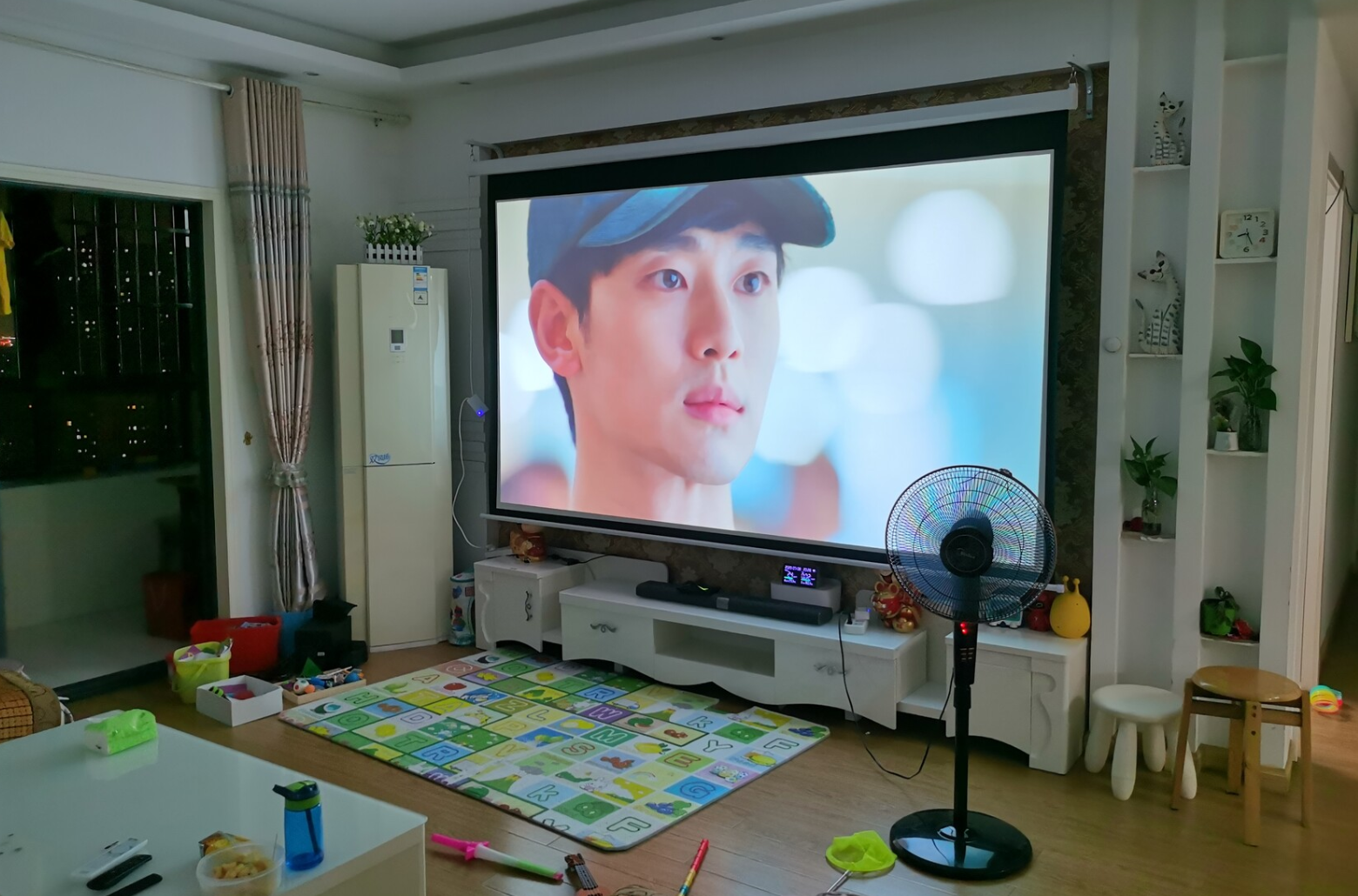 1、我是先买回了投影仪,测试好不好用,再考虑给家里安装电动幕布!