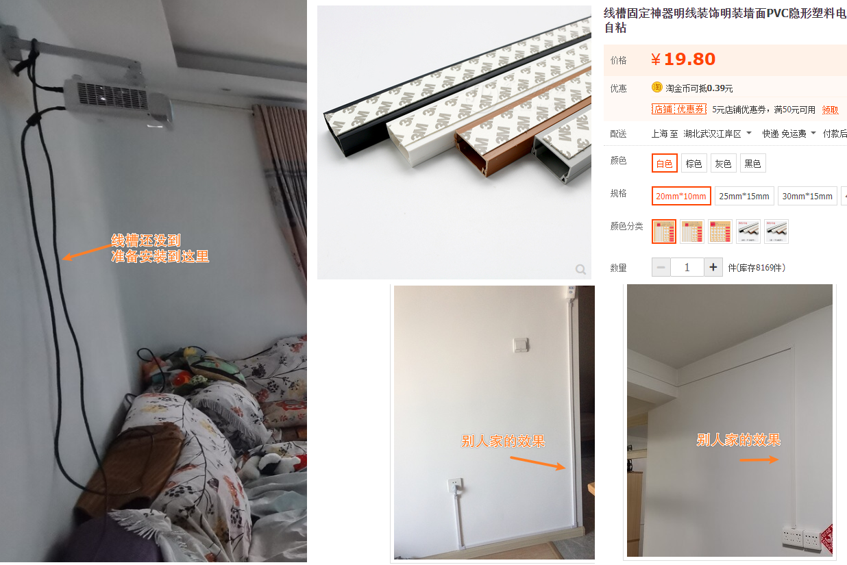 10、截至文章写完,我还没有收到线槽,快递有点慢,后续打算把投影仪的这些明线都用线槽封起来,让整体感觉更美观一点: