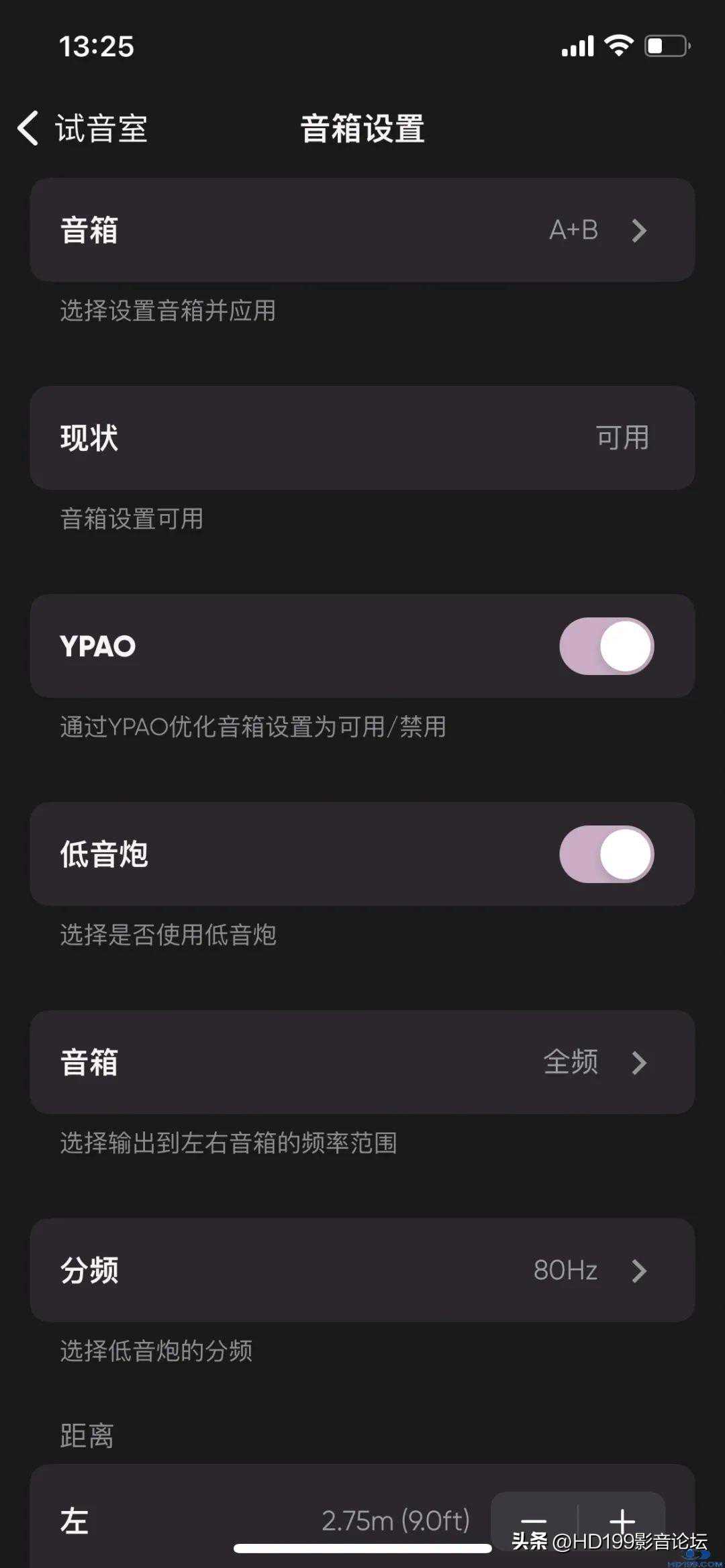 YPAO的各项参数设置都可以在这个APP完成,很直观,一目了然。