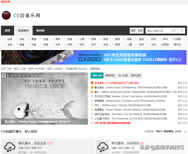 与上面的炫音音乐论坛一样,CD包音乐网也是一个资源分享的网站,其中的无损音乐同样数不胜数,各种类型,经典、发烧、说唱、钢琴等等,还有各种音乐知识、音乐设备、播放器、软件教程等。
