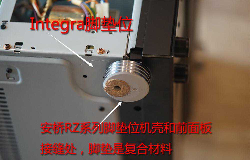 而安桥TX-RZ3100是标标准准的RZ列脚垫,最下面一层有软木材料。同时,安装的位置和Integra的产品也有不一样。