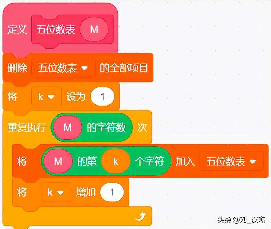 (2)先用子程序把五位数M的各个位数分离出来,放到一个列表“五位数表”中: