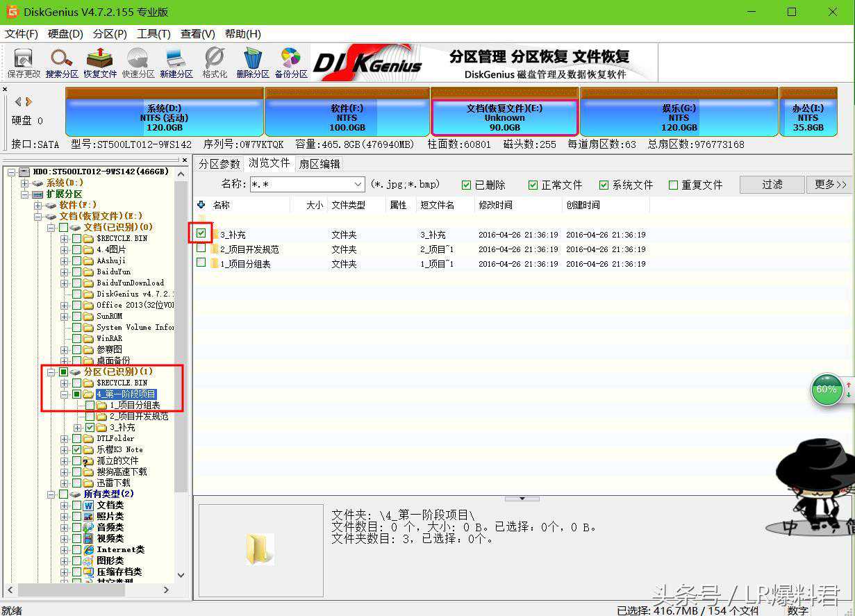 ②下载DiskGenius完美注册版_(已支持恢复大文件)。