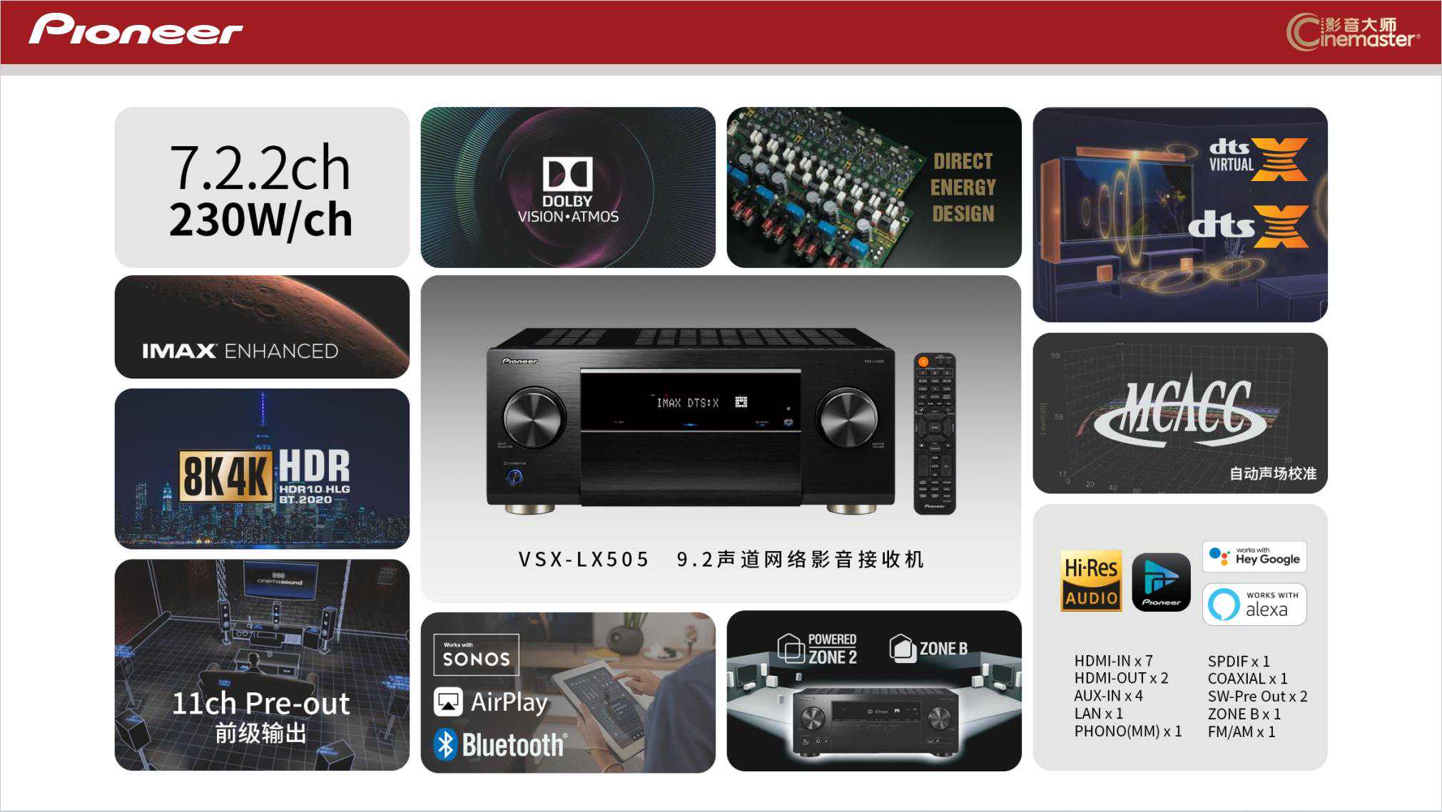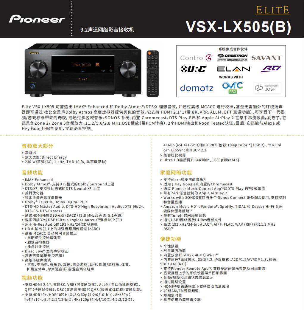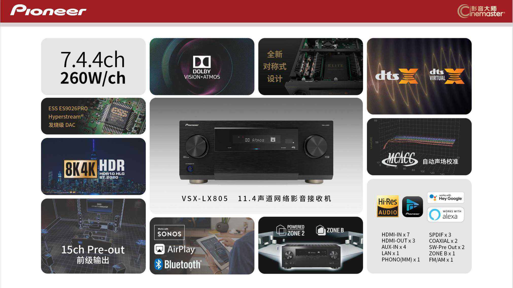 先锋LX805定位旗舰,是一台7.2.4声道解码,支持7.4.4声道前级解码输出的产品,国内定价36800元。