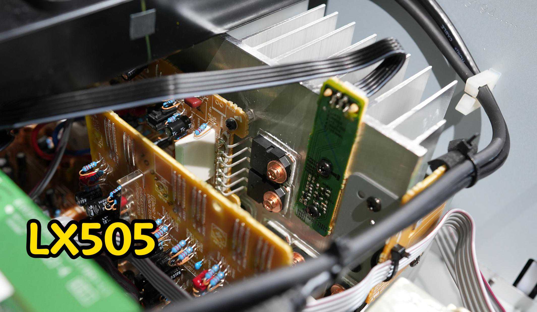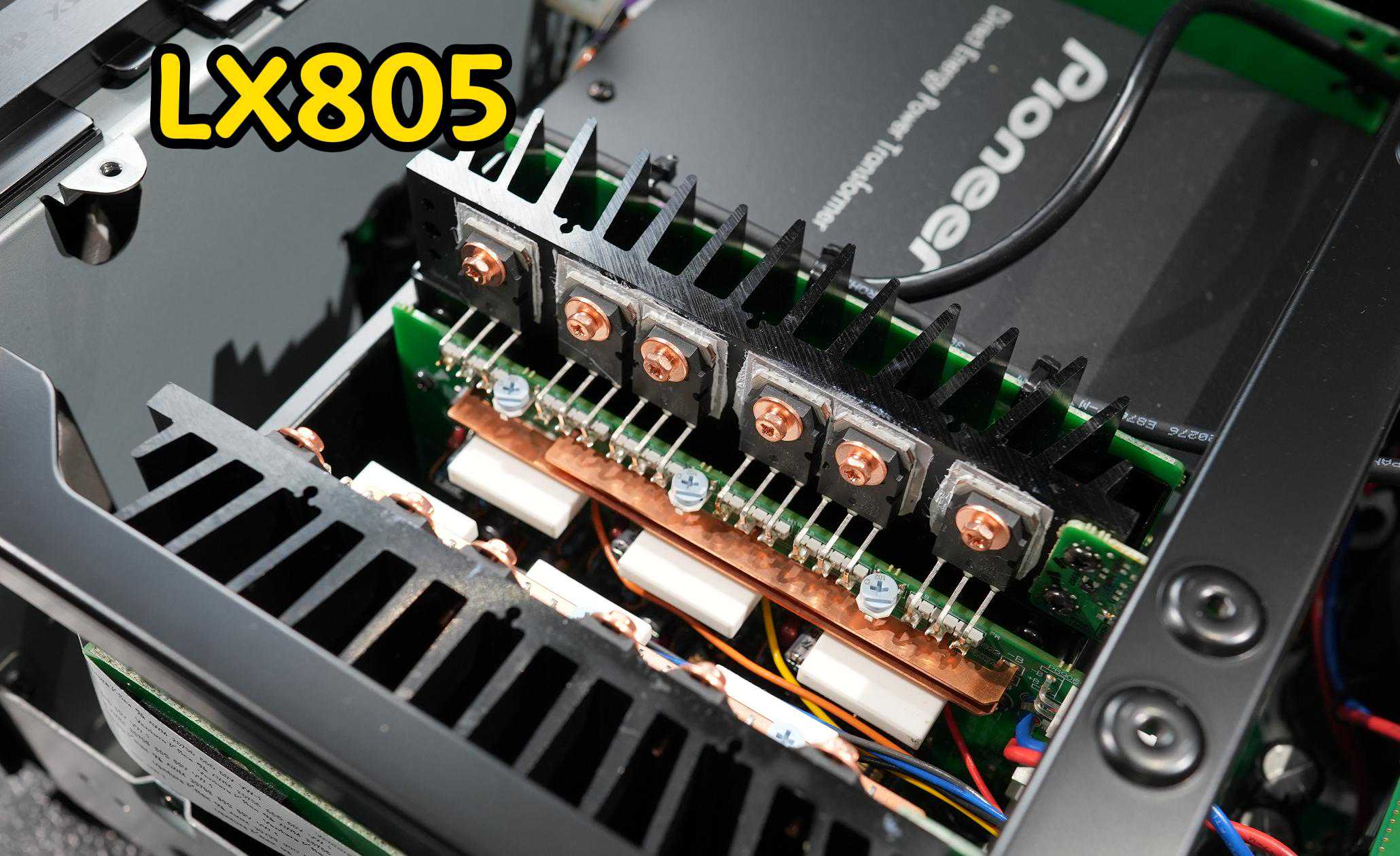LX805的散热片为黑色,上面贴的功率管更集中,一个四块分列在散热器两边