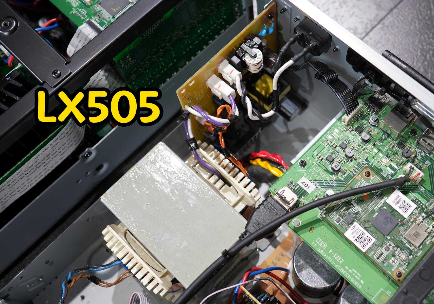 两者的变压器也有较大差别,LX805的变压器更大,并且外部有金属盒屏蔽,而LX505相对就小一些。