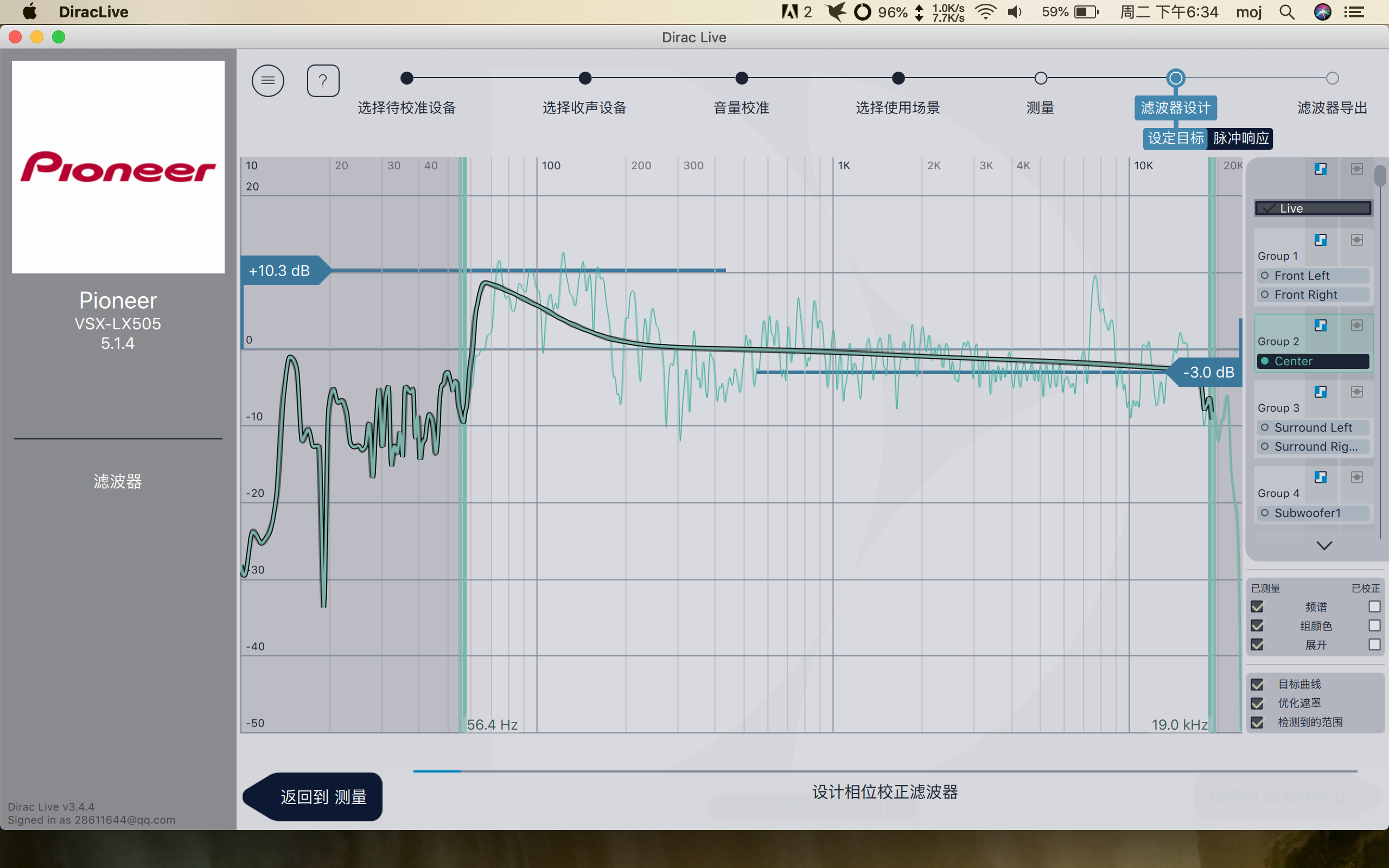 相对于MCACC的不管低音炮频响,Dirac还是一如既往的修正。20HZ以下基本上是平的,20Hz以下Dirac也没怎么管。20HZ以下并不会有人耳能听到的声音发出,但能量比较大的时候会有震感,所以这个15Hz的峰,有没有都行。