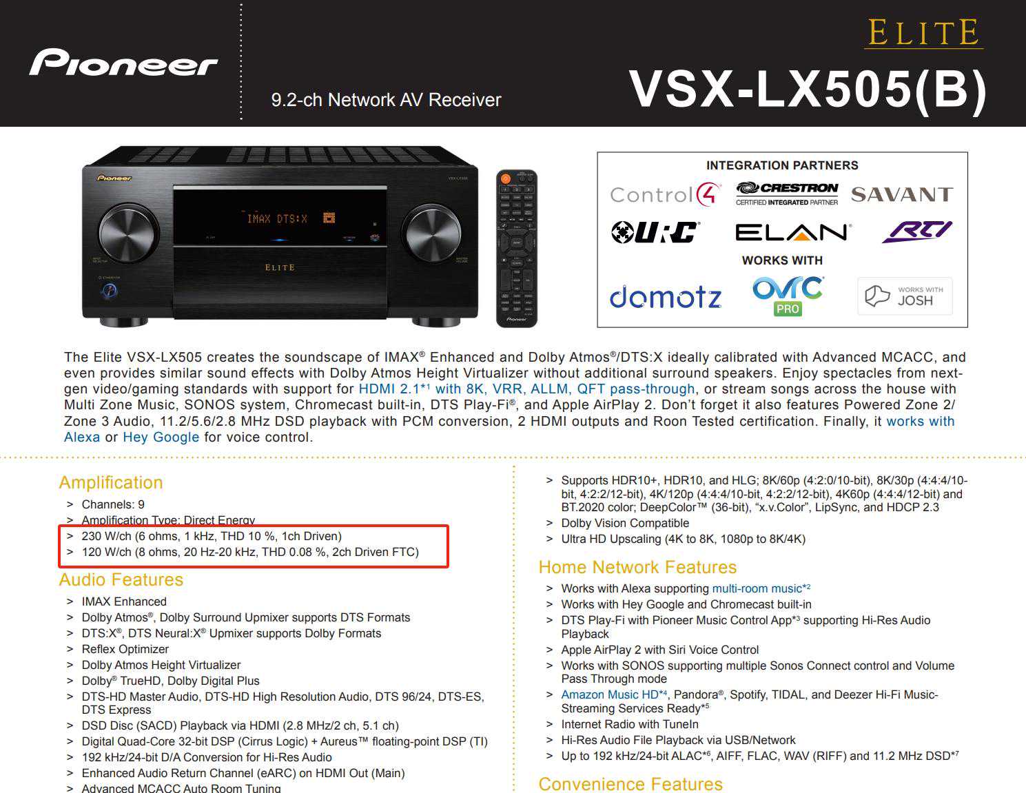 在先锋美国官网能查到这个标准下的LX505功率,是120W。这和安桥RZ50是一模一样的。