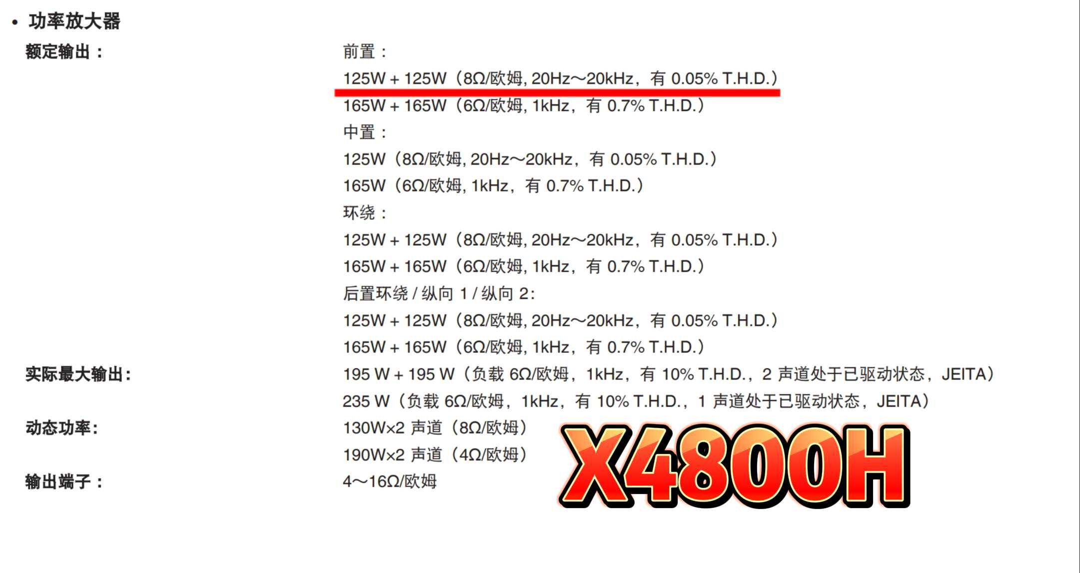 中文资料基本上只能找到他的JEITA功率,反正一标就是两百多W一声道,采样率1kHz。老是有网友拿着这功率问我,摩大大为什么我1万块买个日本XX品牌的AV功放,你还说那功率不够呢?这都200多瓦一声道了。