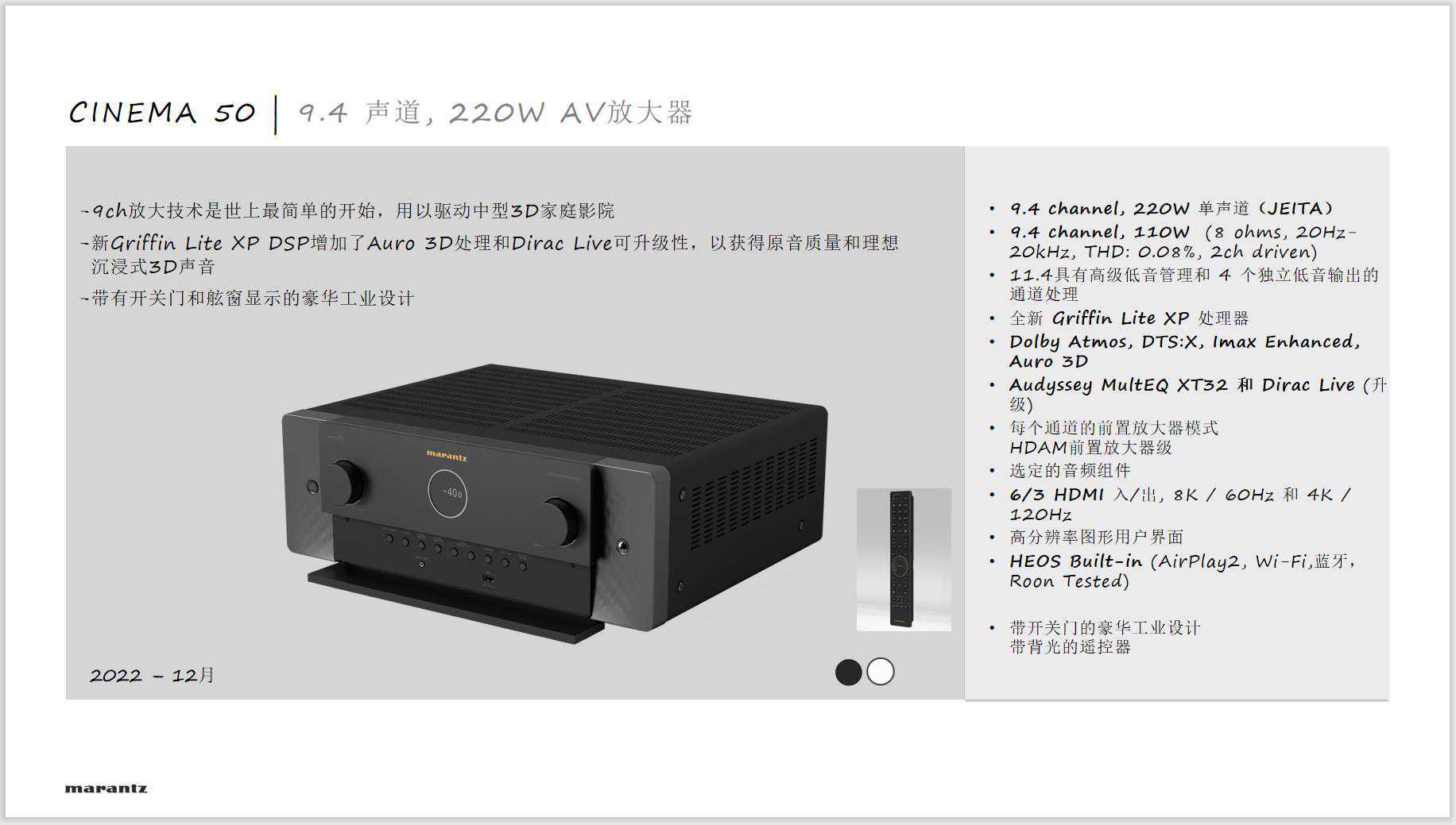 而马兰士在这一规格相近的产品是Cinema50110W和Cinema40125W。