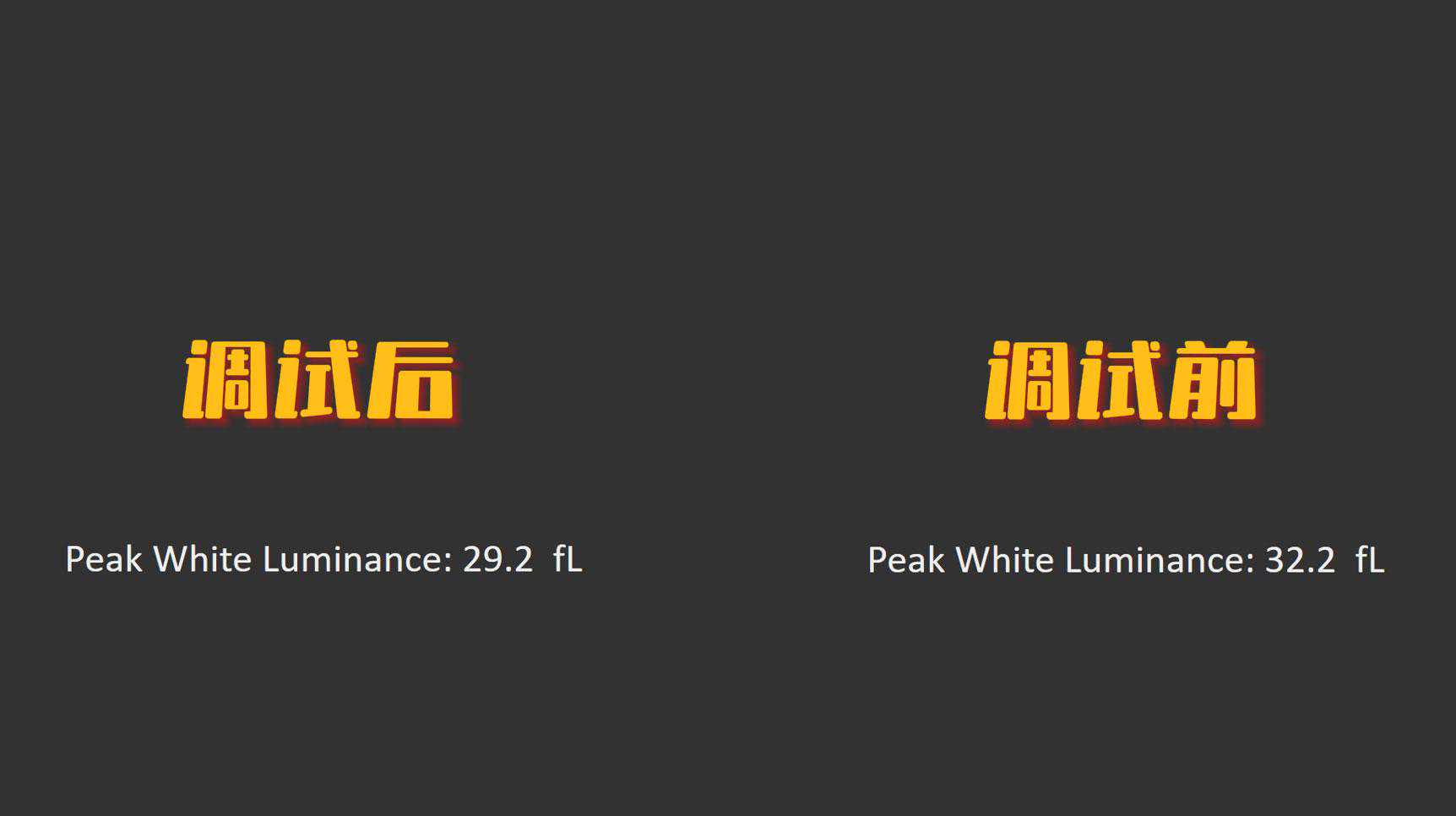同样的160英寸,1.4增益打孔幕,在调试前它可以做到32.2FL。而即便校正白平衡和色彩亮度下降后,依然还有29.2FL。这绝对是2800到3000流明左右的水平。
