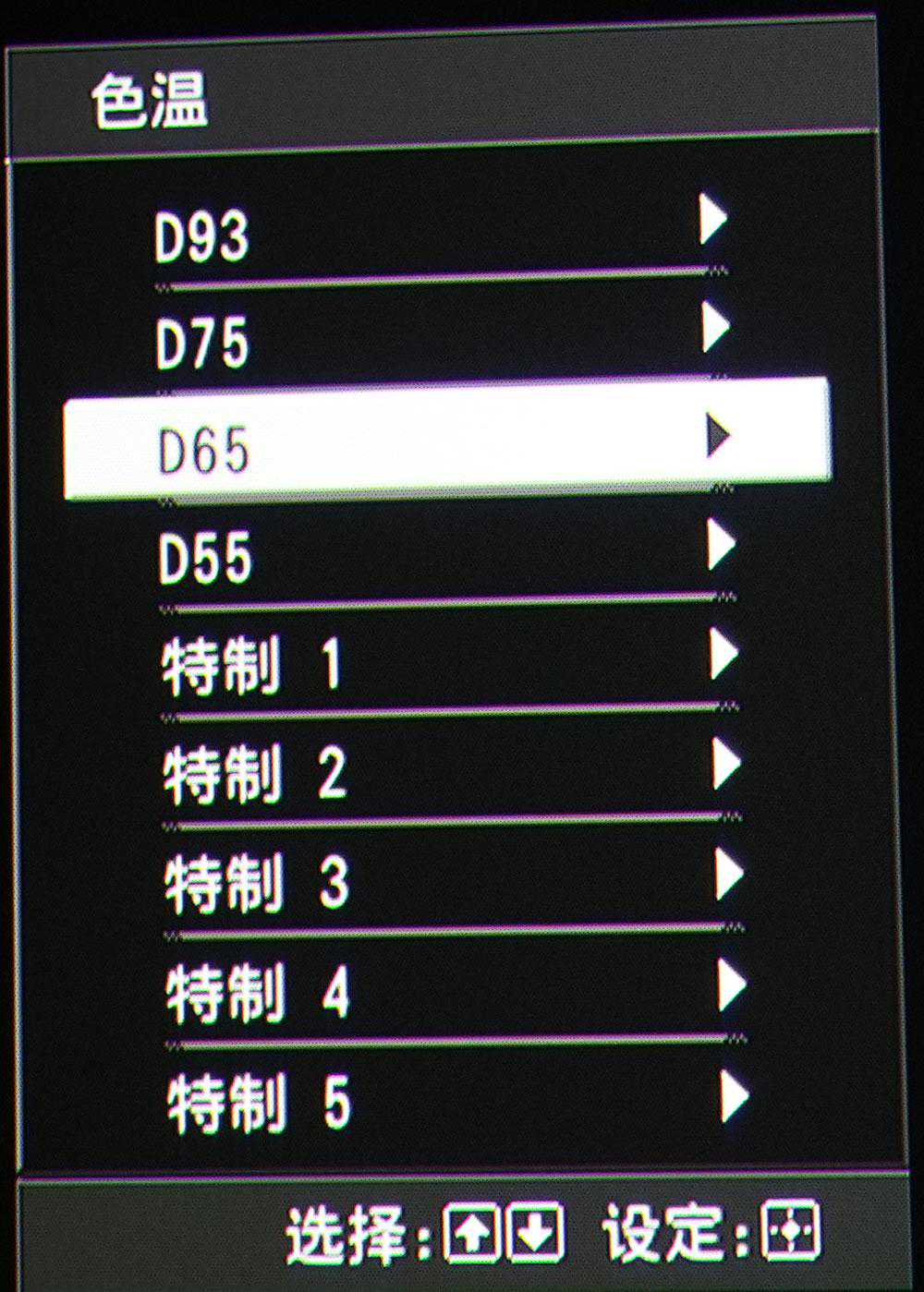 电影都用D65这个标准,所以我们一般会基于这个D65,再按确定键进去细调。
