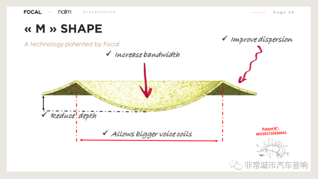 创新的M形设计,由单一部件(没有防尘帽)制成。意味着它具有难以置信的刚性,完美的结合了创造“理想”扬声器的三个基本标准:刚性、轻盈和阻尼。其效果如何?它拥有线性极佳的频率响应,极低的失真以及更好的声音分散效果。