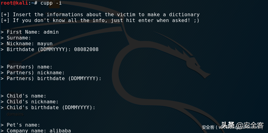 也可使用cupp这款工具,这是一款交互式的工具,使用比较简单