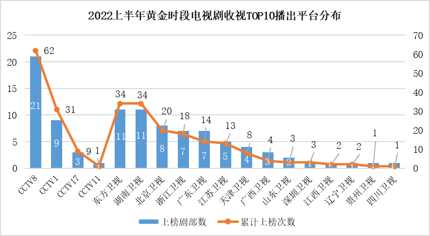 统计范围:2022/1/1-2022/6/30在央视及省级卫视上星首播的电视剧。