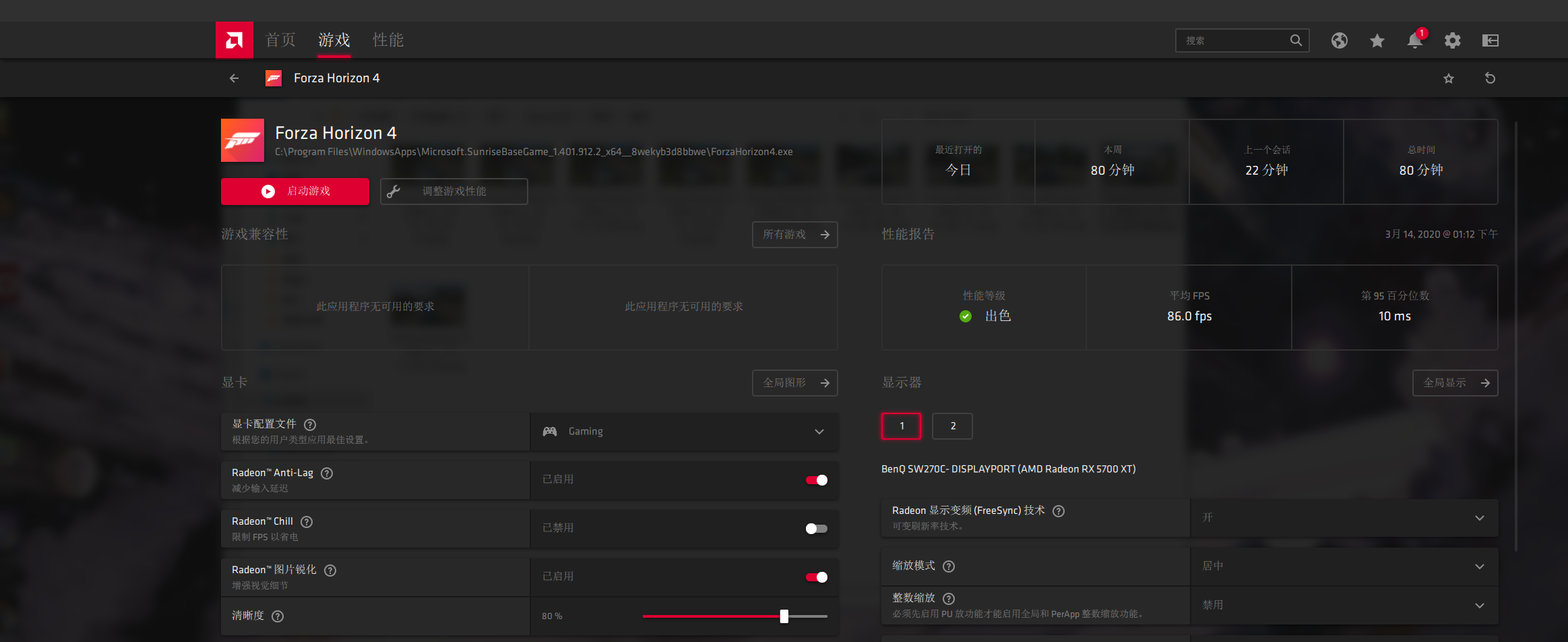 作为偶尔喜欢游戏的玩家,我常玩的城市天际线和纪元2205都不能发挥这个显卡的水平,而极限地平线4其实对显卡要求也不是特别夸张,何况对于A卡进行了优化,所以测试成绩非常优秀。