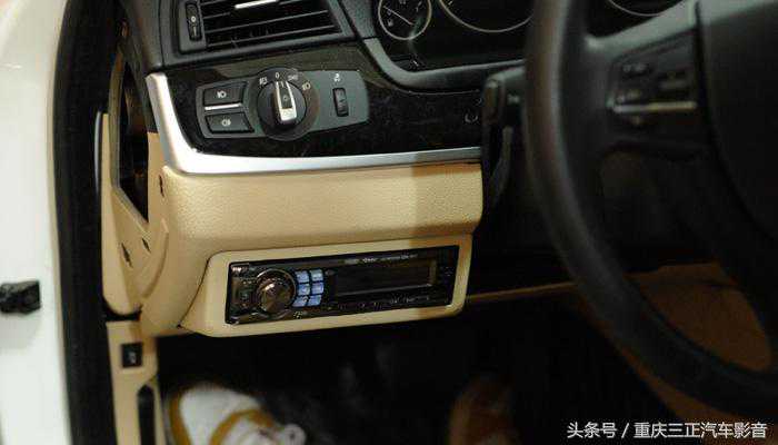 这次宝马523iCD机倒模延续了上一位宝马520发烧级车友的经典倒模方式,倒模在方向盘左下方,这样既美观又方便操作。