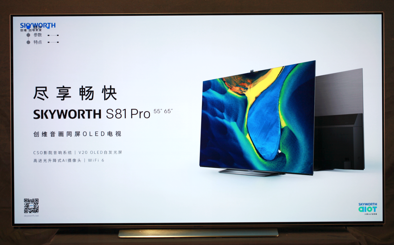 创维给S81Pro电视的定位是一款游戏神器,而且有着最可以体现创维电视实力的一款产品,不仅采用了V20OLED自发光屏幕,而且还有CSO影院级的屏幕音响系统,支持最新的WiFi6,高进光升降式可调角度的AI摄像头以及相对比外资电视品牌优势明显的智能系统。