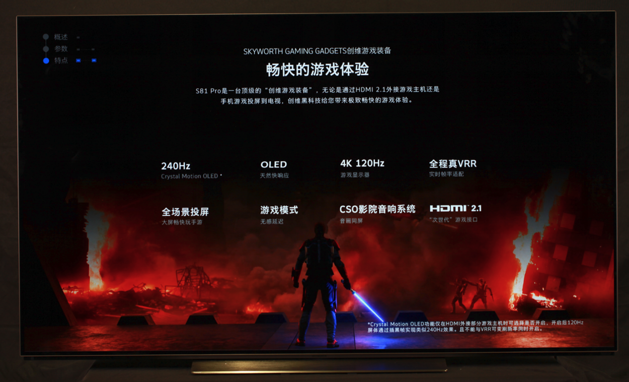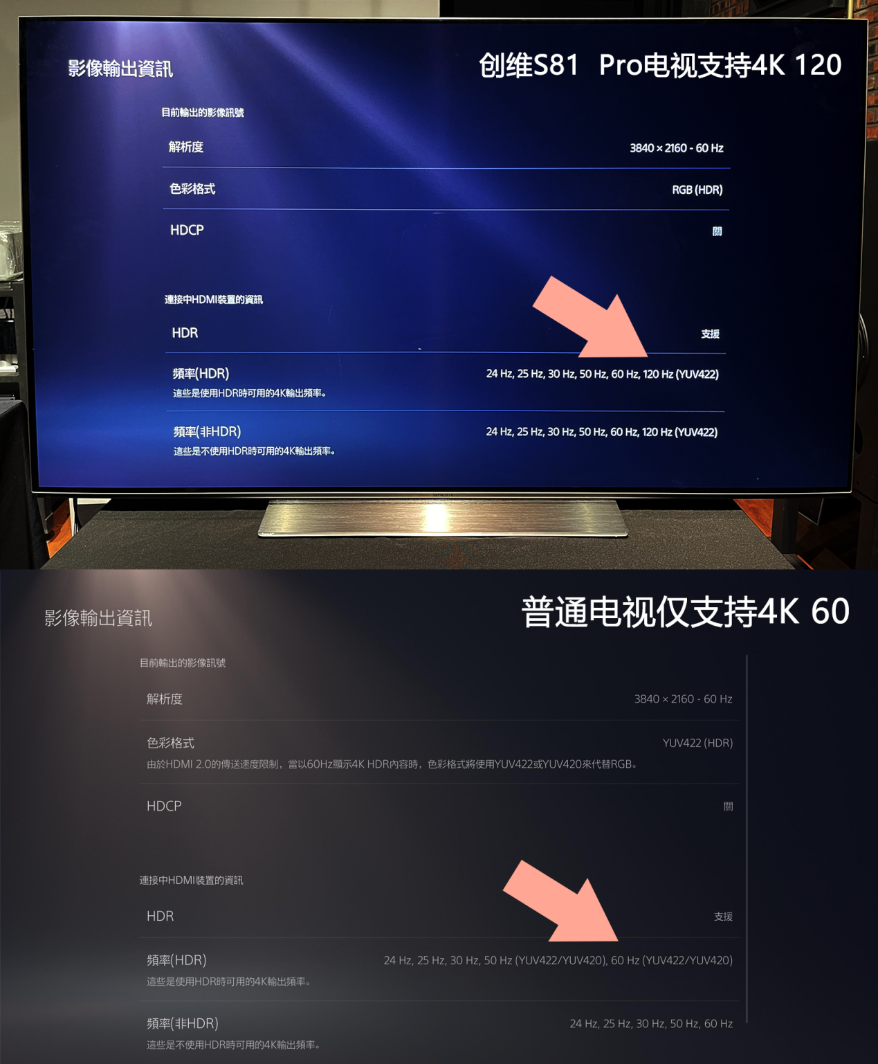 ·创维S81Pro具备4K120Hz屏幕,索尼在售的OLED均为4K60Hz