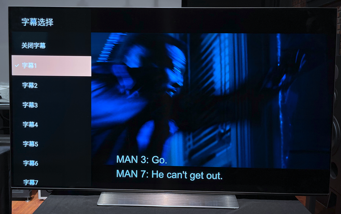 我们又试了一下电影爱好者经常从网上下载的BD蓝光和4KUHD蓝光原盘的文件测试了一下,发现创维电视的内置USB播放器也可以相当专业的播放出来,并且支持切换音轨和字幕,甚至还带有字幕的字体、字号、颜色和位置的自定义等专业播放器才有的功能。