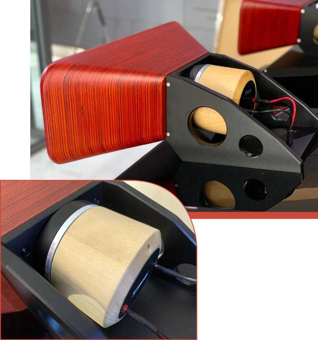 巴赫音箱以传统号角设计为基础,融入计算机辅助设计与测试、先进的制造工艺,加上有丰富经验的人耳调音,最终成绩足以取代我所听过的任何一款老式号角音箱!我分几部分来介绍这对有着鲜红色木号角,一眼就能吸引眼球的巴赫音箱。