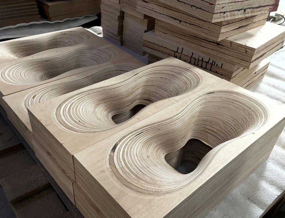 木号角以芬兰桦木板黏合后再CNC正反二面车制出所需的曲线形状