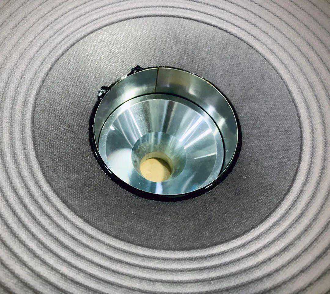 锂铝合金振膜有不错的极高频延伸,但声音比较直白,缺少一点厚度与色彩,这是TD4001高音驱动头华丽音色至今仍很难超越的关键。找不到4英寸铍膜,潘超杰退而求其次的找到3英寸铍膜,测试后一方面有与TAD类似的厚度与实体感,音色漂亮,而极高频延伸又接近索尼的锂铝合金振膜。