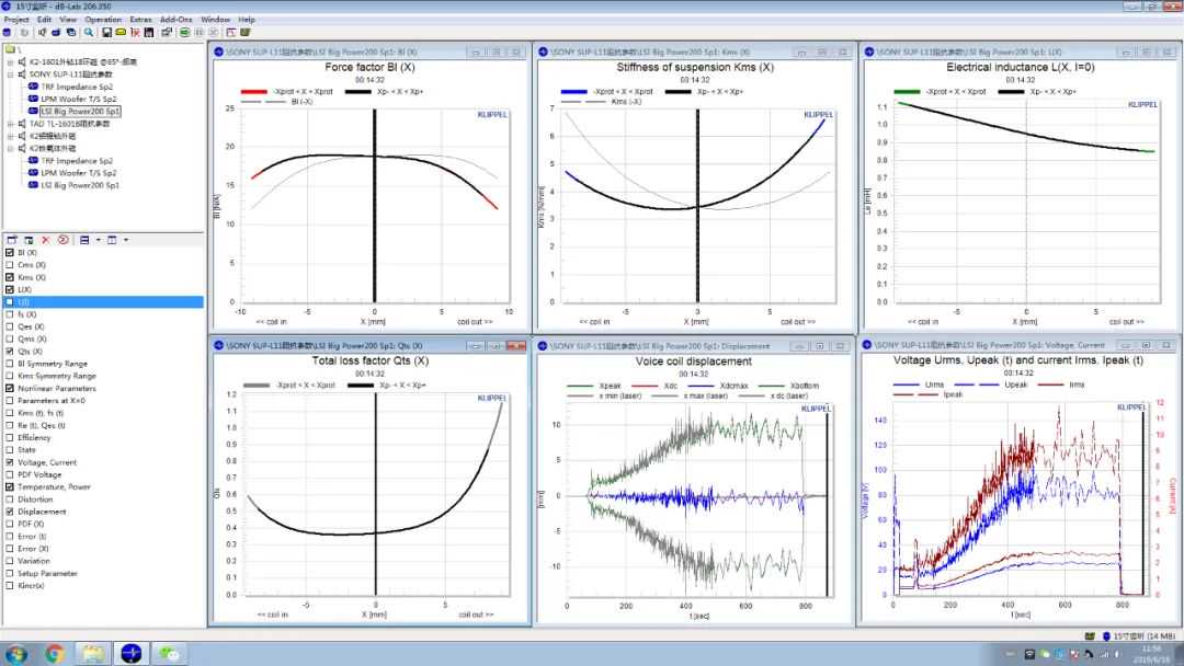 透过价格过百万元的德国KLIPPEL激光测试仪器,我们可以清楚看到单元的主要运动特性与变化
