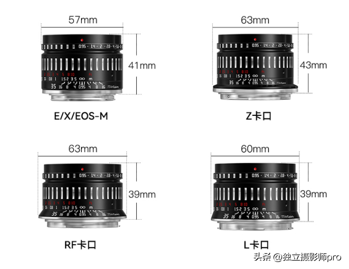 2022年11月25日,国产铭匠光学TTArtisan正式发布35镜头,该镜头等效全画幅52.5mm视角,采用5组7片结构,10片光圈叶片,最近对焦距离为35cm,52mm滤镜接口,镜身尺寸57*41mm,重约247克,具备索尼E、富士X、佳能EF-M、佳能RF、尼康Z以及L卡口,首发仅售1000,极具性价比。