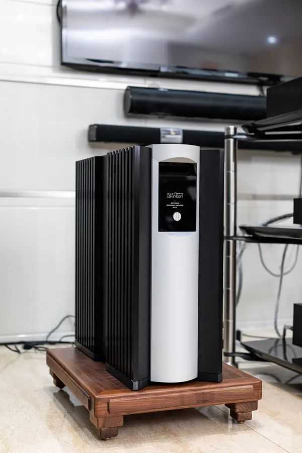 直立式机箱设计的,线条利落、外观雄伟,展现君临天下的旗舰之姿。四大部份分别是模拟输入、调变、放大线路与电源供应;模拟输入级包括平衡与非平衡输入。而调变线路则是IPT放大的技术核心,MarkLevinson使用6层PCB板,包括大约1,500个零件,一共使用了4个独立模块。输出级是“直立”方式置于机箱内部,这也是需要使用直立机箱的原因。输出组件为MOSFET,每一个声道使用4个空芯电感。在电源供应部份,一般ClassD使用交换式电源,可用的还是传统电源,每一声道装置了2.8kVA的环形变压器。配上188,000μF电容,放大线路的机板上还加了105.600μF的电容,总共每声道有293,600μF的电容,储能量高达680焦耳。