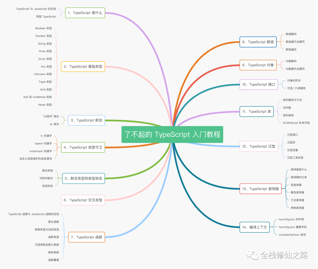 想学习TypeScript的小伙伴看过来,本文将带你一步步学习TypeScript入门相关的十四个知识点,详细的内容大纲请看下图:
