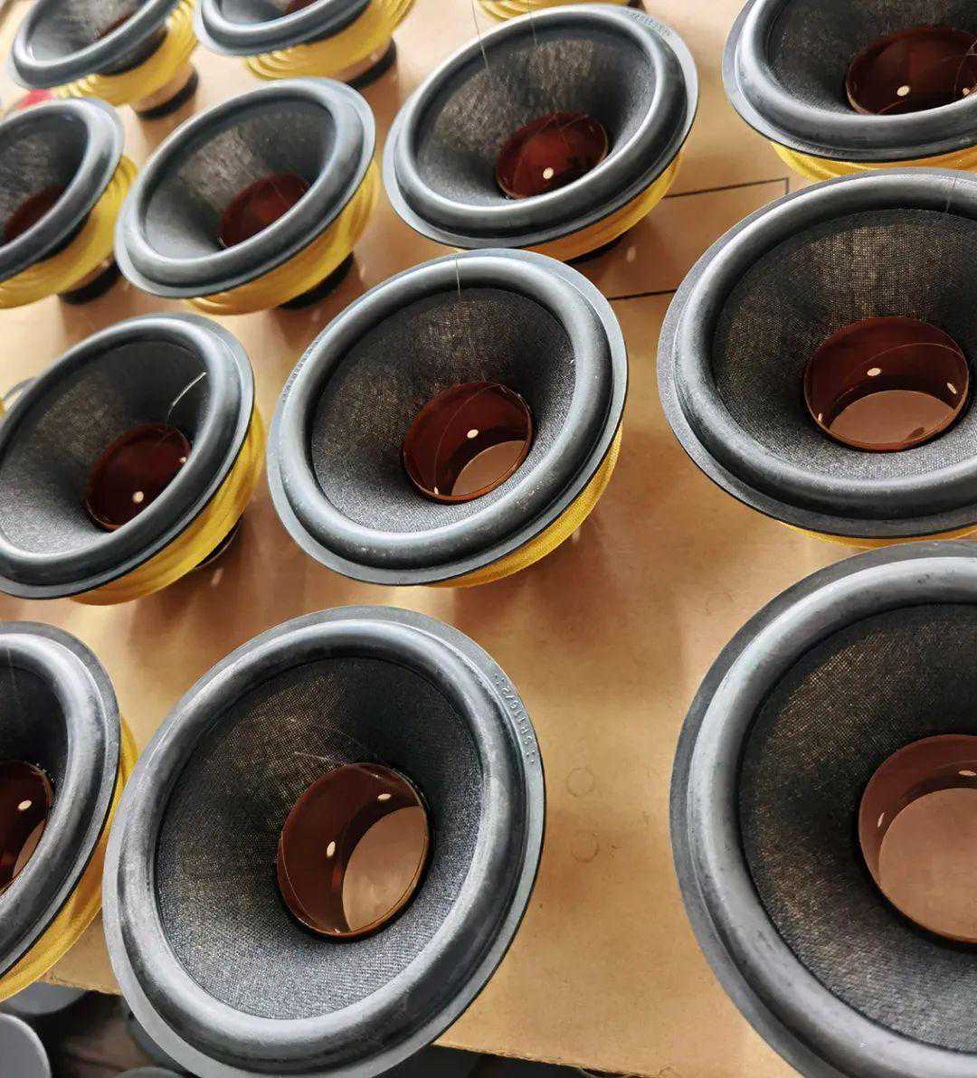 低音单元的半成品与组装完成的成品,我们可以发现美之声的单元音圈直径非常大。EricNielsen是大直径音圈之父,他提出一个定律:即任何扬声器单元的音圈直径都必须≥振膜直径的一半。这一发现既简单又有效,确保即使是微小的音乐细节也能够得到忠实、有力、受控的还原