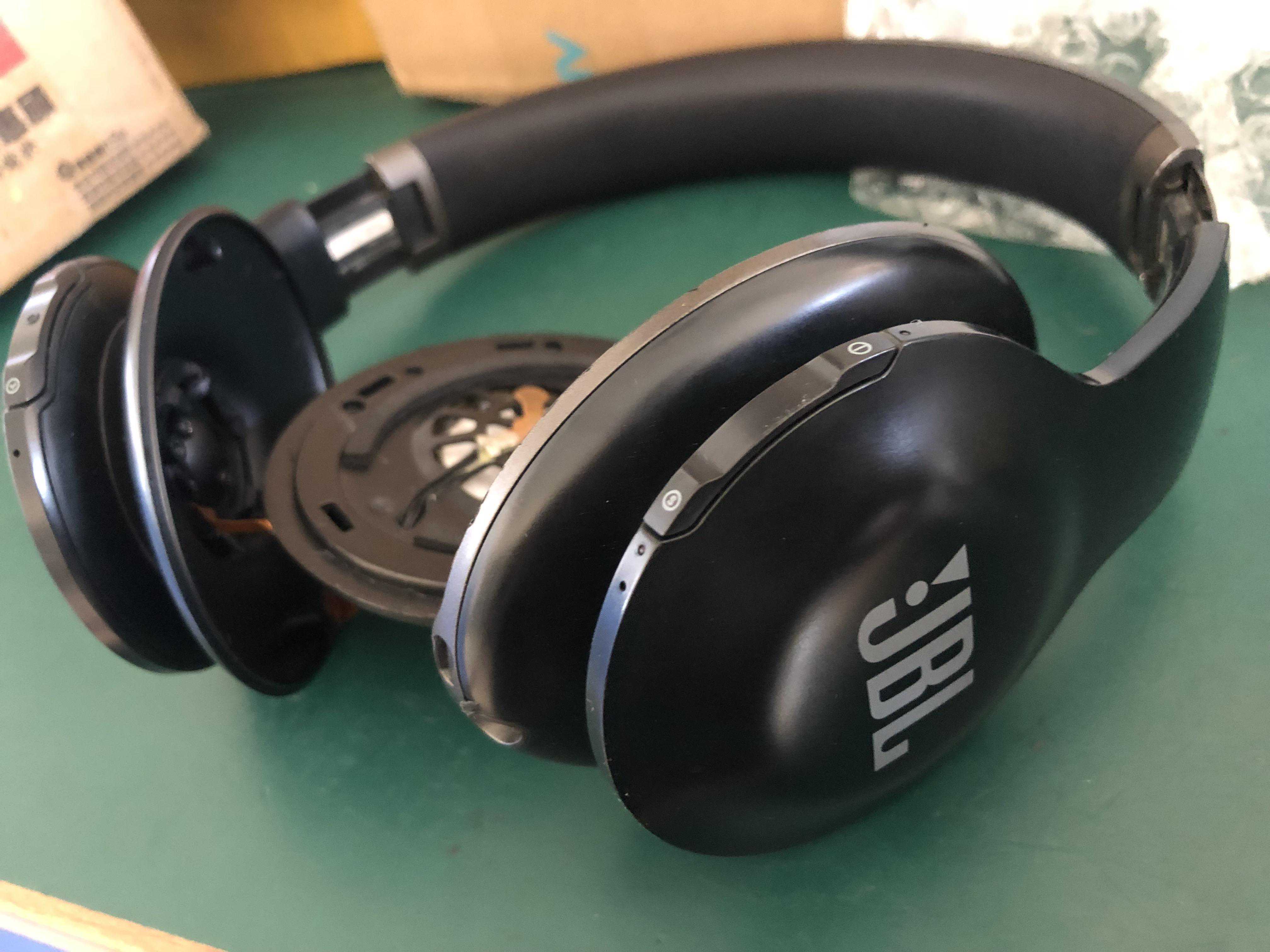 手头这台,听着听着,一边无声了,以为是接触不良,可是怎么带着蹦跶都没有反应,想想这种耳机,带蓝牙和降噪电路,不知道会不会电路故障,于是就拆开先测试喇叭看看