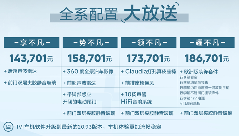 除了产品升级之外,这新增加的1元,还包括了非凡信贷礼、非凡增换购礼、非凡质保礼、非凡保值礼、非凡保养礼、非凡旅行礼6重礼遇。