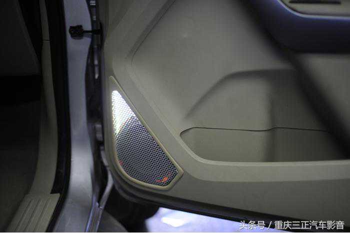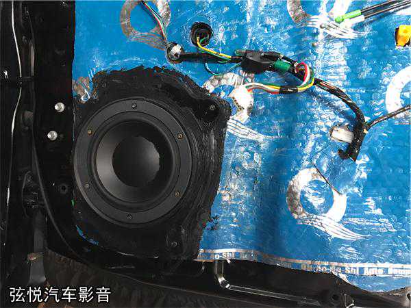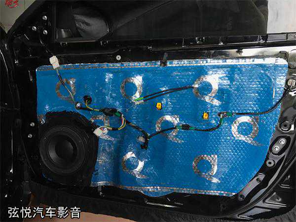 隔音是汽车音响的基础工程,说是基础,垫脚石没做好高楼就会不稳。弦悦此次针对丹拿342中低音,为前两门门板量身订做隔音,材料用了安博士的顶级音乐宝贝,音乐宝贝采用特级丁基阻尼胶双组合研制而成,表面复合六角网格蓝色铝箔,针对车门钣金薄弱,加强钢性厚实,加上精湛的手工,使门板达到木箱箱体的效果,同时具有超强的隔音效果。