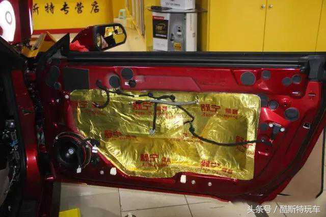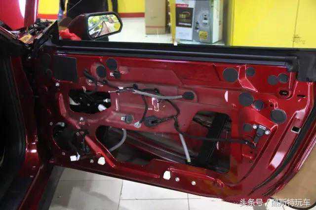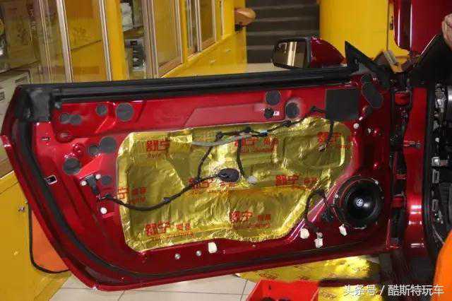 车门里外两层隔音把内层的门钣金贴满压紧,减少钣金震动;外层支架用减震胶贴上把空余的空隙封死,保证放置在车门的音响设备减少受到震动干扰,且让车门成为一个箱体,这样不仅能降低噪音还能更好的发挥音响设备。