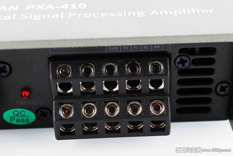 首先,PXA系列产品都有独立的电源输入,这是大功率放大器可靠工作的前提条件,并且电源和喇叭的连接端口也进行了防氧化镀镍处理,让传输更加高效低失真。再有就是产品出色的散热系统。说实话,很难在DSP功放产品上看到像PXA系列这样出色的散热系统,有良好散热性能的铝制外壳只是基本,左右两侧面的散热鳍片也只是常规,但前后两侧面配备的通风散热孔和小风扇,就真的有惊喜了,这说明PXA系列是真的有强大的功率输出能力,并且为大功率的稳定输出做了充足的准备。