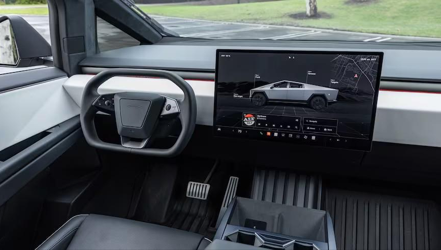 来到内饰部分,相信大家都知道特斯拉一向来主打极简约化,所以Cybertruck也不例外,具备新的方向盘设计,简约的设计风格,全景天窗,整个内饰的氛围很高级+科技!另外,Cybertruck的18.5寸超大尺寸显示屏,同样可操控车子所有的功能,玩游戏+查看车况等等,同时在后座部分也拥有9.4寸的娱乐主机,这对一辆皮卡来说是蛮不错的配备!
