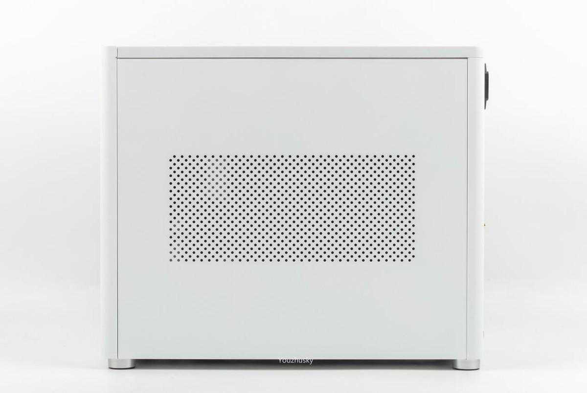 另一边的钢板中间有网孔通风,其实是因为它可以与左边的钢化玻璃侧板相互换