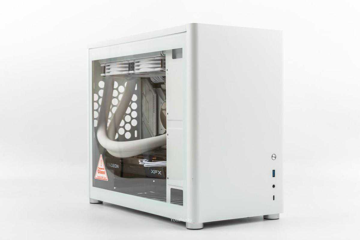 乔思伯白色D30外观颜色为正白,只有脚垫为银色,喷砂和漆面色泽非常统一,除了显卡外的水冷和主板、电源、内存也都是白色