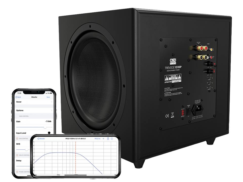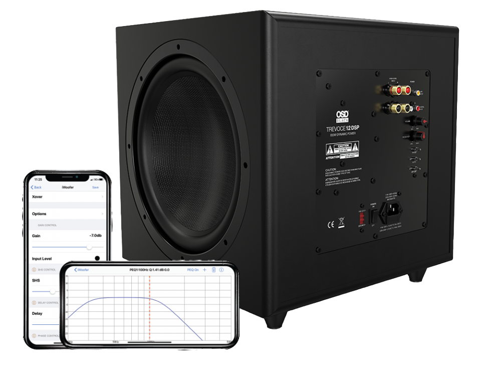 Trevoce12EQDSP低音炮采用三重对称低音扬声器设计,800W大功率,内置DSP增强低音并确保极低的失真,第三方iWooferiOS/Android应用程序进行控制。