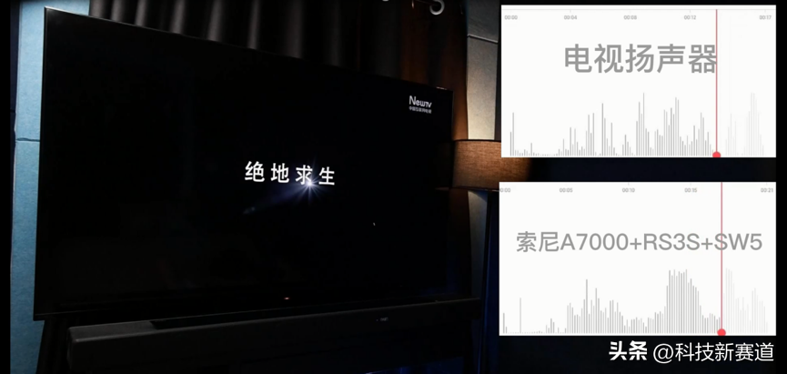 最后,为了测试有无回音壁的区别,我们在电影场景下进行了测试,分别在有回音壁和没有回音壁(电视扬声器)的情况下,播放电影《沙丘》中相同的片段来进行对比。通过声音录制的波形图可以看出,有回音璧的情况下波形图起伏更大。这说明中高低频要比电视扬声器好得多。