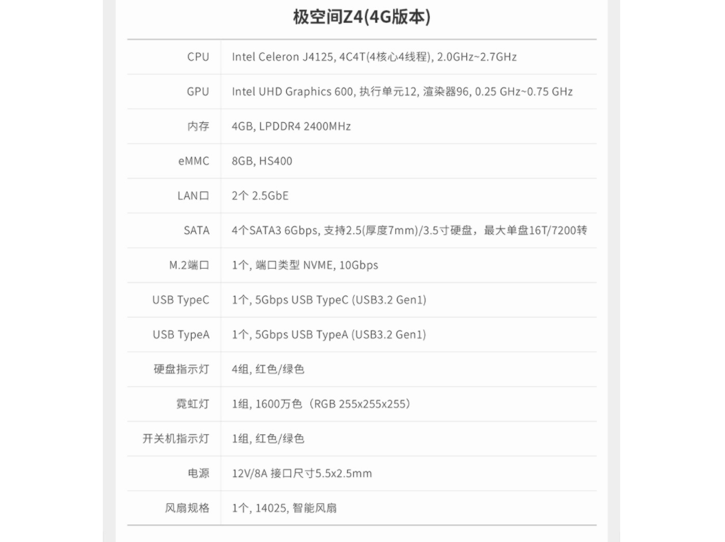 还好,极空间Z4,是采用的2021年最主流的成品NAS的处理器:J4125处理器!