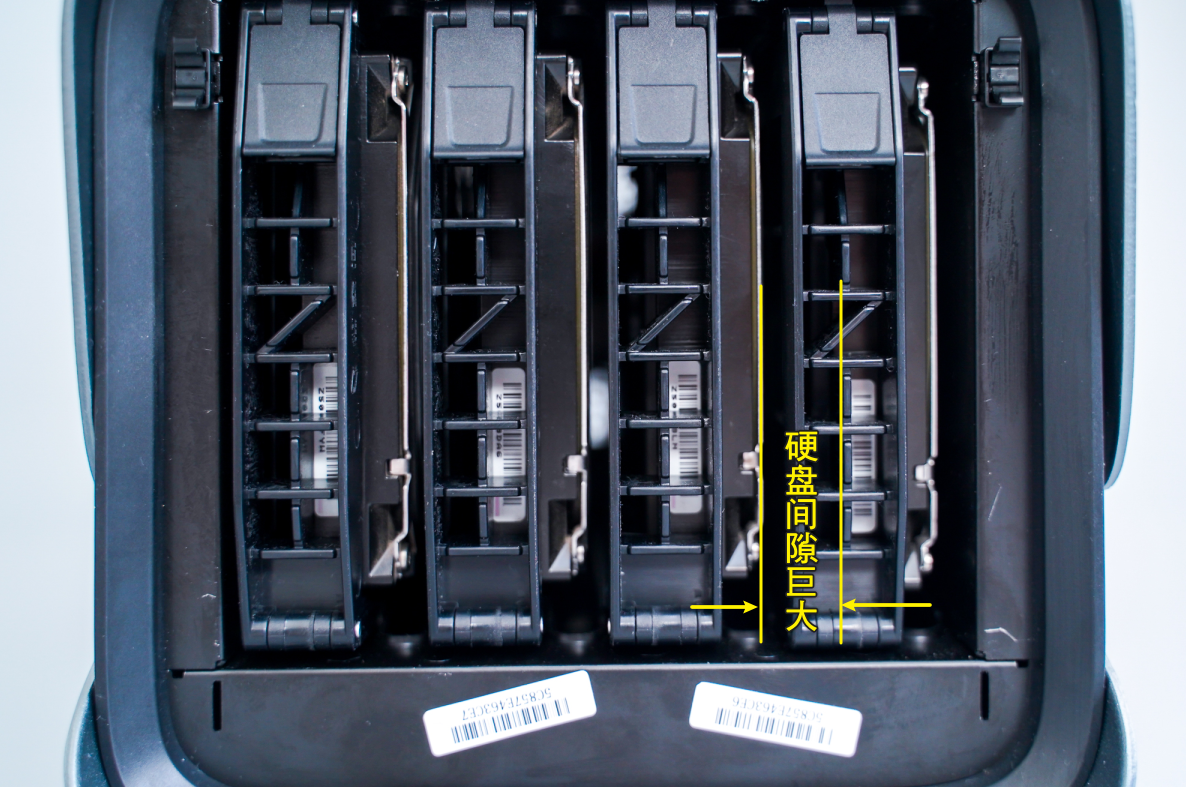 极空间Z4的硬盘与硬盘之间的间隙,是留得非常大的: